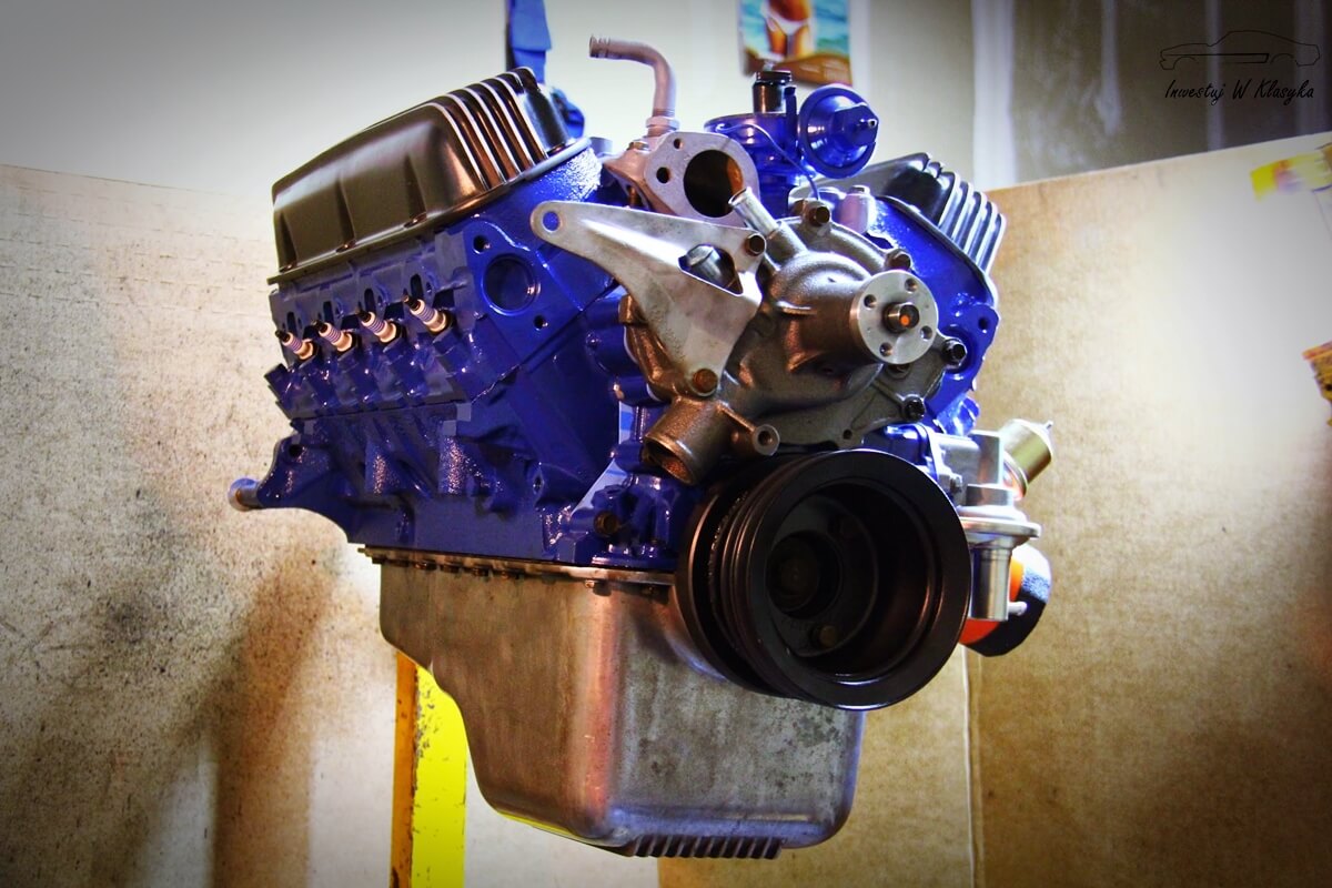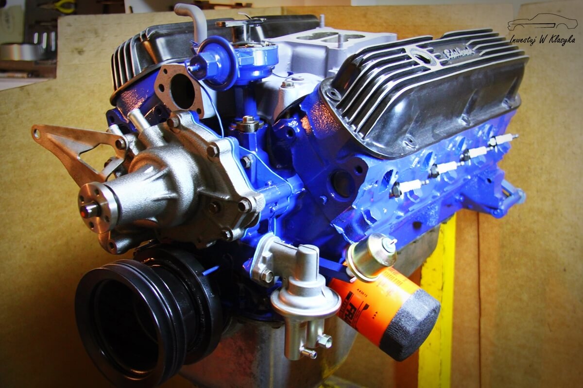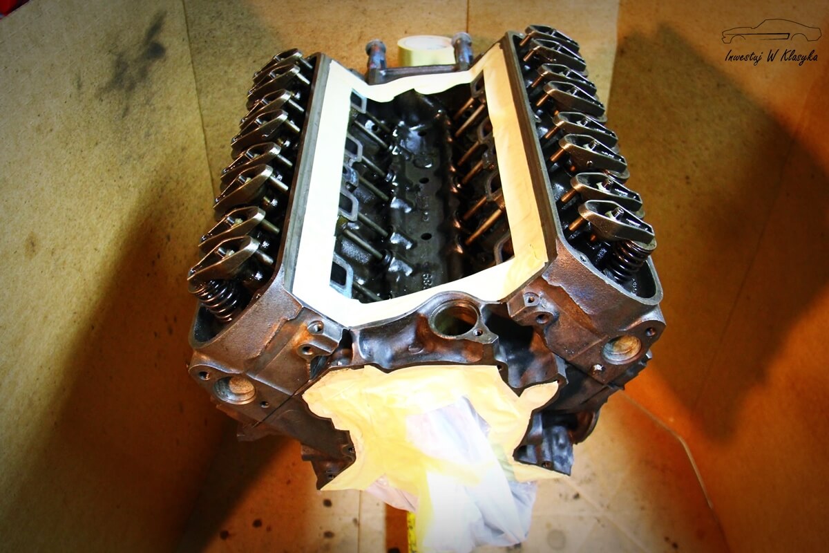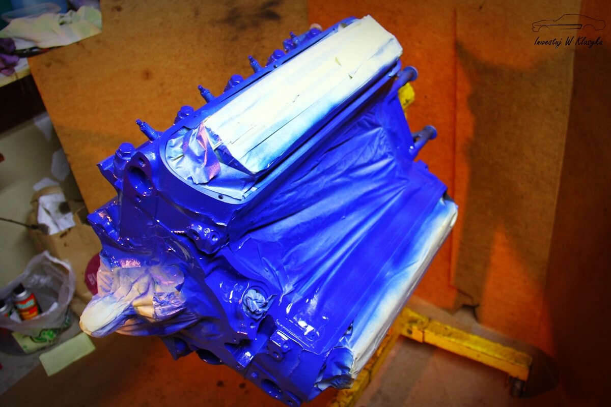 Odmalowany blok silnika, wypiaskowane kolektory dolotowe (Edelbrok) i wydechowe,